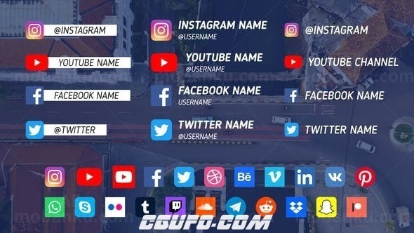24509创意字幕条动画AE模版110 Social Media Lower Thirds